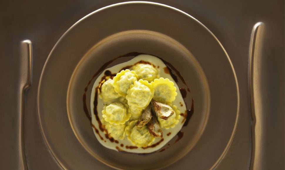 L’existence de ravioli en Italie est attestée dès le début du xiiie siècle, avant le voyage de Marco Polo en Chine. La Ligurie offre une gamme de pâtes farcies la plus riche de toute la péninsule italienne. Les « Ravioli di carciofi » sont farcis de cœurs d’artichaut, ail et oignon hachés avant d’être mélangés avec de la ricotta fraîche, du parmesan râpé, des œufs, de la marjolaine et accompagnés d’une sauce tomate ou aux champignons. Nous les avons cuisinés différemment.