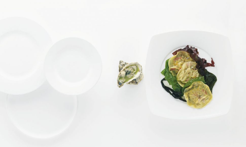 Ravioli de coquillages/kaiso, wasabi iodé