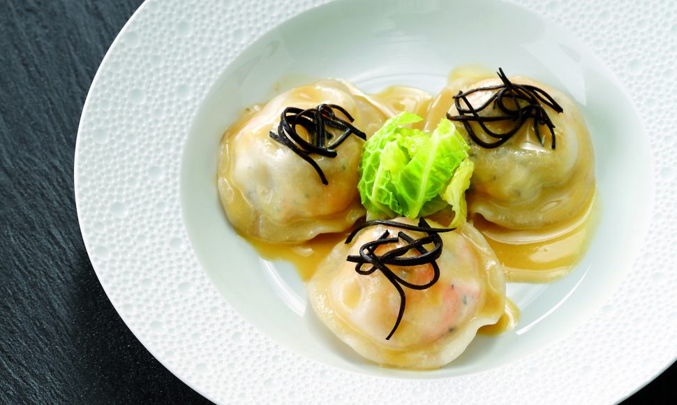"J'apprécie cette élégante préparation de mes débuts de cuisinier-restaurateur en décembre 1981, au Jamin à Paris. Elle dégage de délicieux arômes de langoustine et de truffe, terre et mer assemblées. La cuisson des raviolis au court-bouillon préserve le goût subtil de la langoustine. Sachez que malgré son nom, la langoustine n'est pas une petite langouste. Son corps est plus proche de celui du homard."