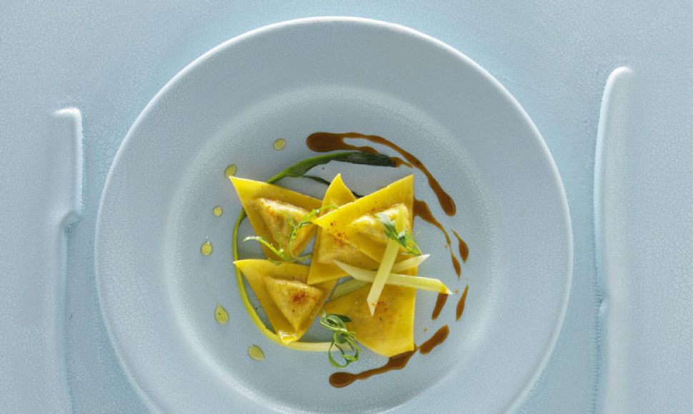Les « ravioli di magro » sont un plat traditionnel et un peu oublié de la cuisine ligure, mariant dans leur farce mérou et ricotta. Nous avons respecté la recette originelle en enrichissant ce plat d’un jus coraillé.