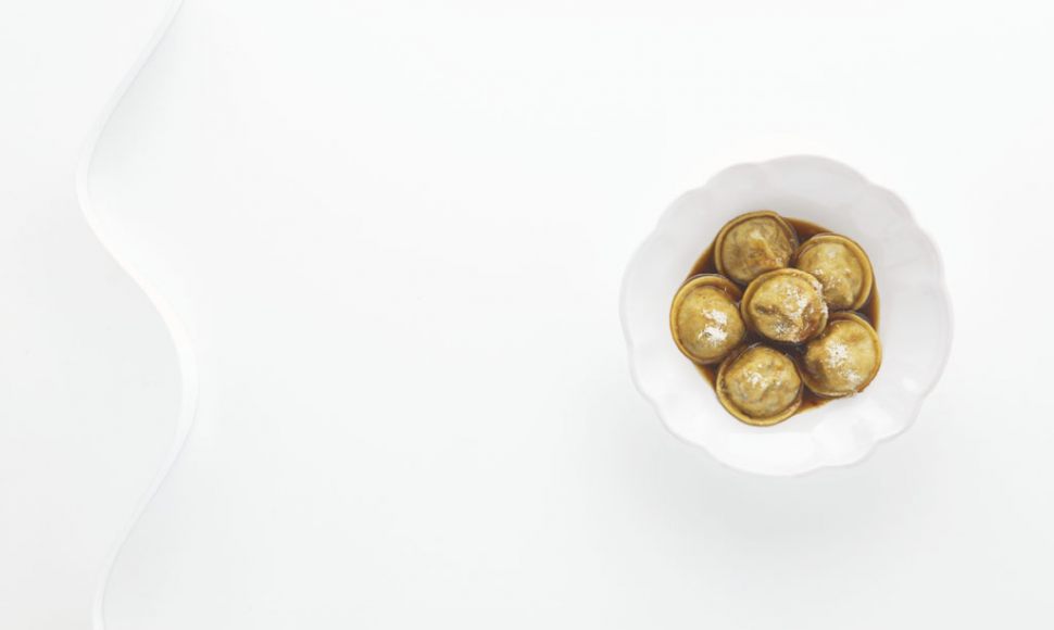 Ravioli de queue et joue de bœuf aux épinards, jus d’une daube à l’orange