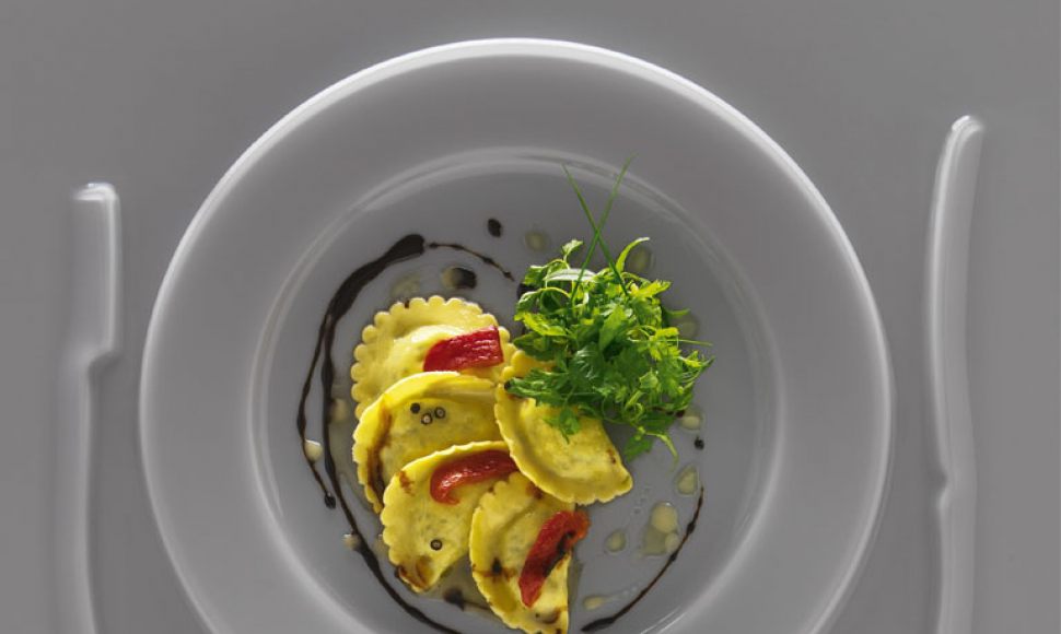 Ouverte sur deux mers mais sans port, la Basilicata est une des régions les plus pauvres d’Italie, où les troupeaux de chèvres et de moutons sont la seule richesse. La cuisine est le reflet de ce pays montagneux qui propose surtout des plats de pâtes, de préférence farcies. La ricotta est faite à partir de lait de chèvre ou de brebis. D’où ces « ravioli con ricotta », que nous avons agrémentés d’herbes et d’un jus de vinaigre balsamique.