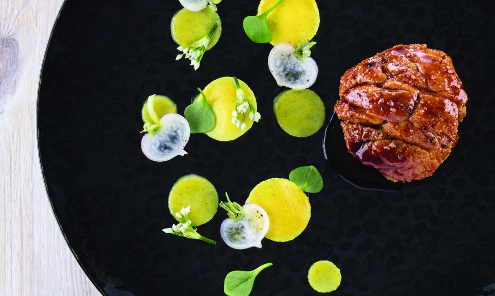 « Ce que j’aime beaucoup avec ce ris de veau, c’est qu’on parvient à le faire rôtir. On termine la cuisson par un petit glaçage sur le dessus, mais l’intérieur reste hyper moelleux. C’est un jeu de textures très contrasté qu’on peut rarement retrouver avec d’autres produits. »