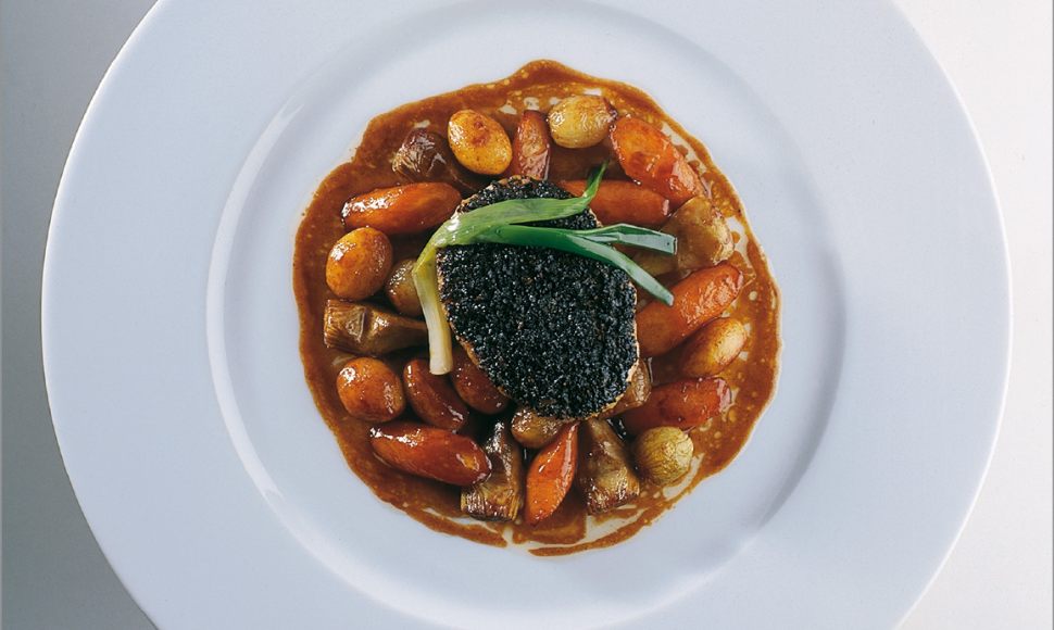 Ris de veau de lait fermier de corrèze pané aux truffes, légumes en gros morceaux, vrai jus
