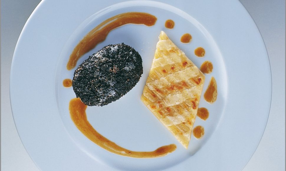 Ris de veau de lait fermier de corrèze pané aux truffes, timbale de macaroni