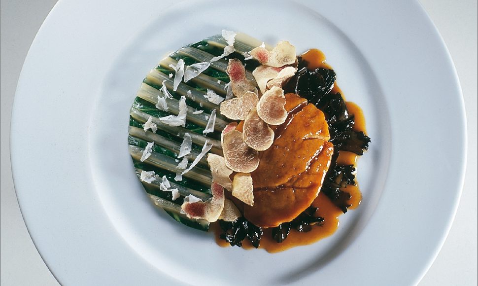 Ris de veau doré, blettes en gratin, râpée de tuber magnatum pico