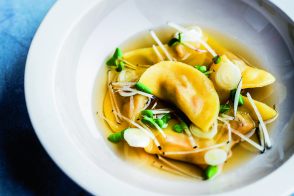 Mettre le bouillon de légumes à chauffer. Torréfier le riz à sec dans une casserole bien chaude. Le mouiller avec une petite quantité de bouillon de légumes et renouveler l'opération plusieurs fois. Cuire ensuite pendant 18 minutes.