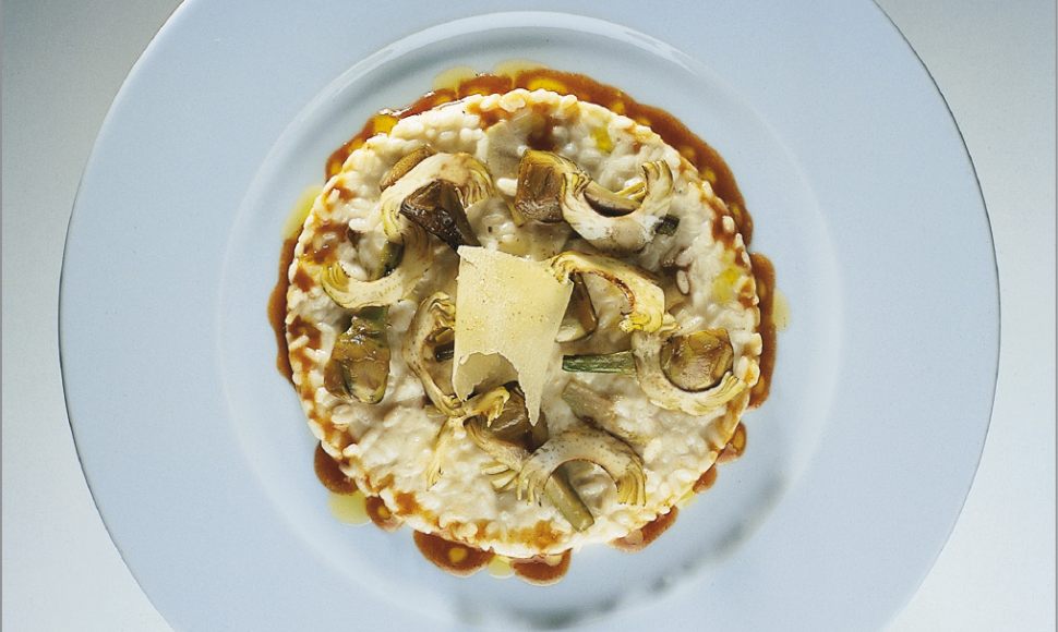 Risotto aux artichauts piquants, copeaux de vieux parmesan