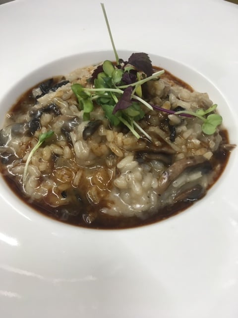 Ajouter le bouillon louche par louche tout en remuant (18 minutes la cuisson du riz), 5 minutes avant la fin de cuisson, ajouter les champignons.