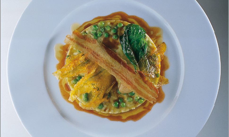 Risotto aux petits pois « téléphone », aux fanes de navet et de radis