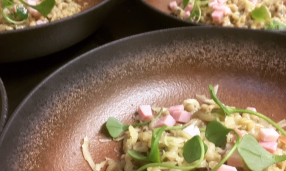 Risotto de coquillettes au jambon, truffe d'été, vieux comté