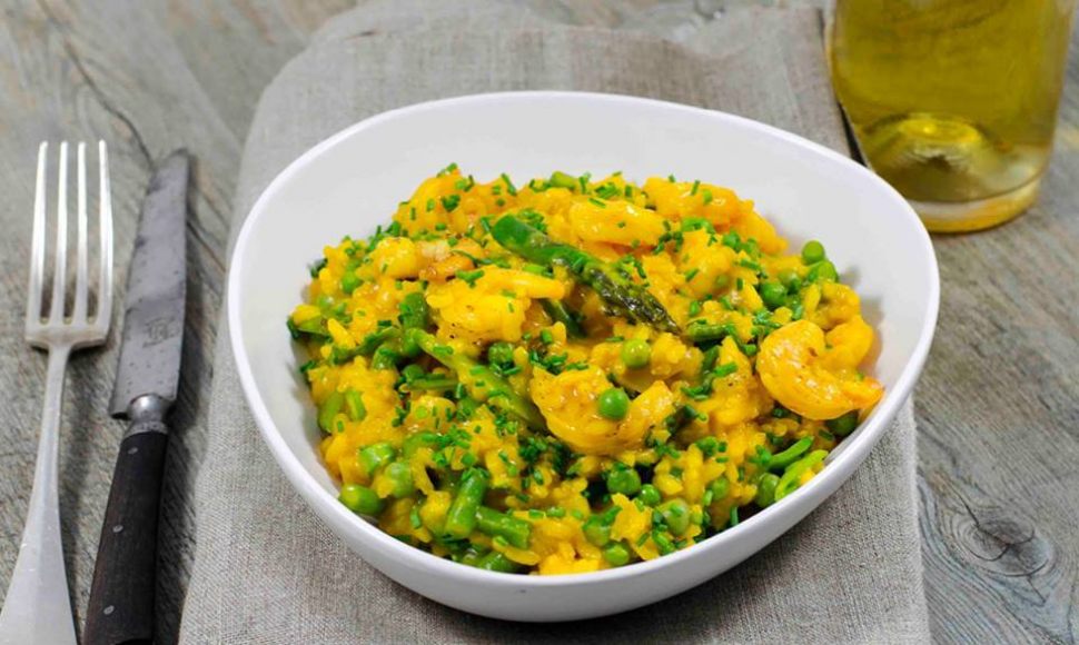 Ajouter les queues de crevettes et les légumes verts puis lier avec le mascarpone et une noix de beurre
