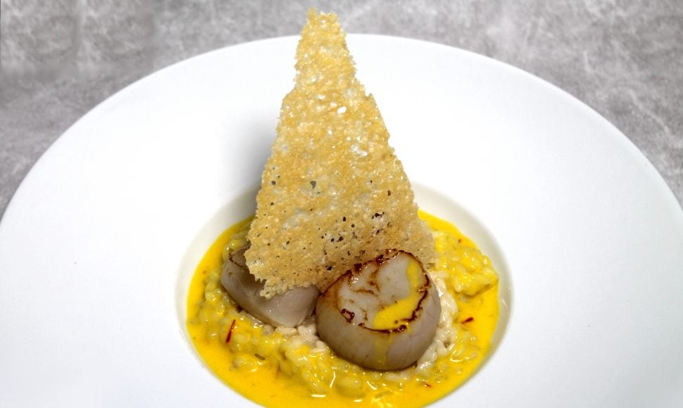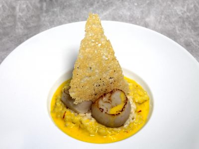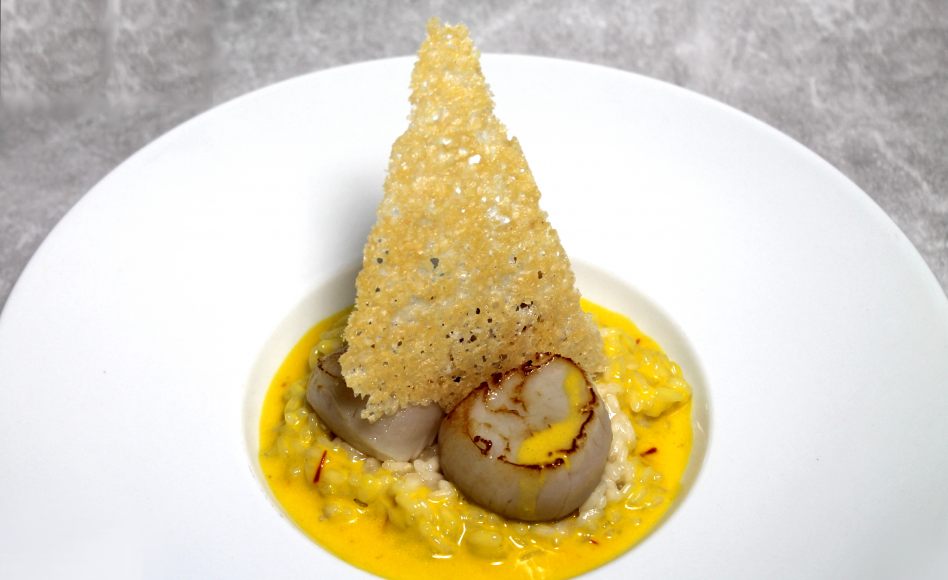Risotto, Saint-Jacques, safran et tuiles parmesan