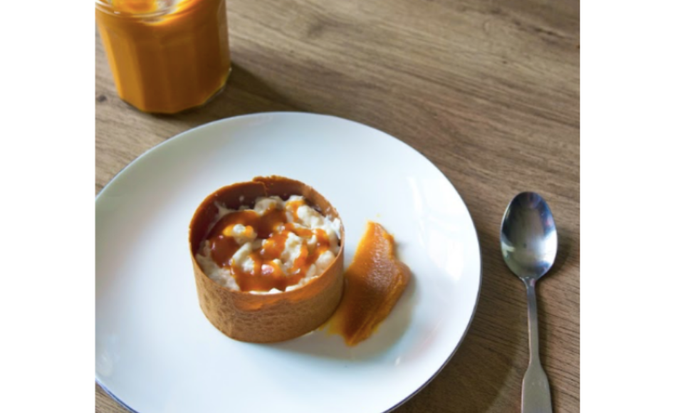 À la sortie du four, rouler immédiatement la tuile autour d’un cercle de diamètre 80 mm afin qu'elle prenne cette forme. Réserver au sec.