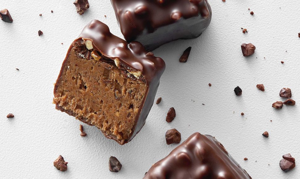 Parsemez d’amandes hachées la surface de la plaque de chocolat obtenue, puis détaillez-la en 16 petits cubes de 2 cm de côté.