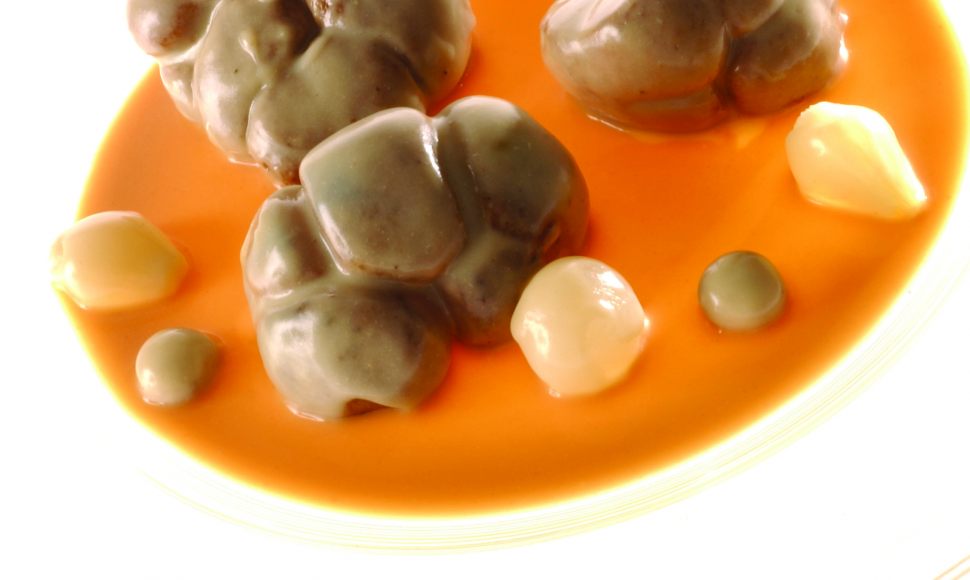 Sortir les rognons de leur gangue de graisse. Les dénerver et ôter la membrane, enlever les parties graisseuses de l’intérieur. Découper chaque rognon en huit, en suivant le plus possible la forme des petits lobes.