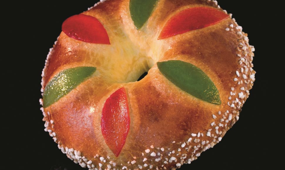 À Bordeaux, exit la frangipane, que l'on appelle d'ailleurs la galette parisienne. Ici, la couronne est ronde, dorée à souhait, briochée, surmontée de fruits confits et de sucre grain. Bien sûr, la personne qui trouve la fève devient le roi ou la reine de la journée.