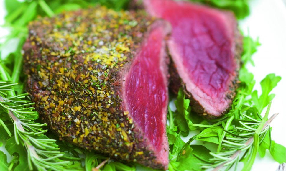 Lavez le romarin et hachez-le, puis râpez le zeste de citron. Saupoudrez-les sur le plan de travail, ajoutez 1 c. à c. de fleur de sel et 1/2 c. à c. de poivre concassé. Roulez le filet de bœuf dans ce mélange, puis emballez-le dans du film alimentaire. Réservez à température ambiante pendant 30 min.