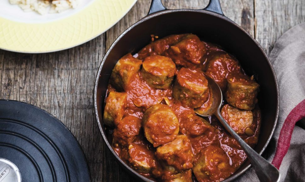 Plat traditionnel de l'île de la Réunion, le rougail saucisse tient son nom de la langue tamoul, rougail voulant dire "ragoût".