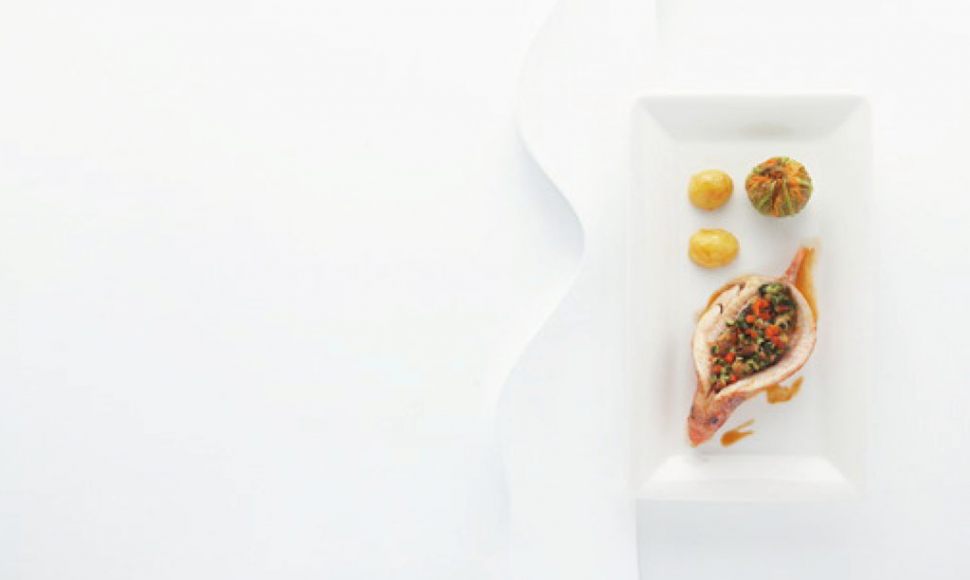 Rouget de roche farci puis braisé au jus de bouillabaisse