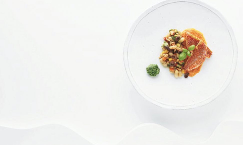 Rouget de roche haricots lingots frais, caponatina douce et pimentée