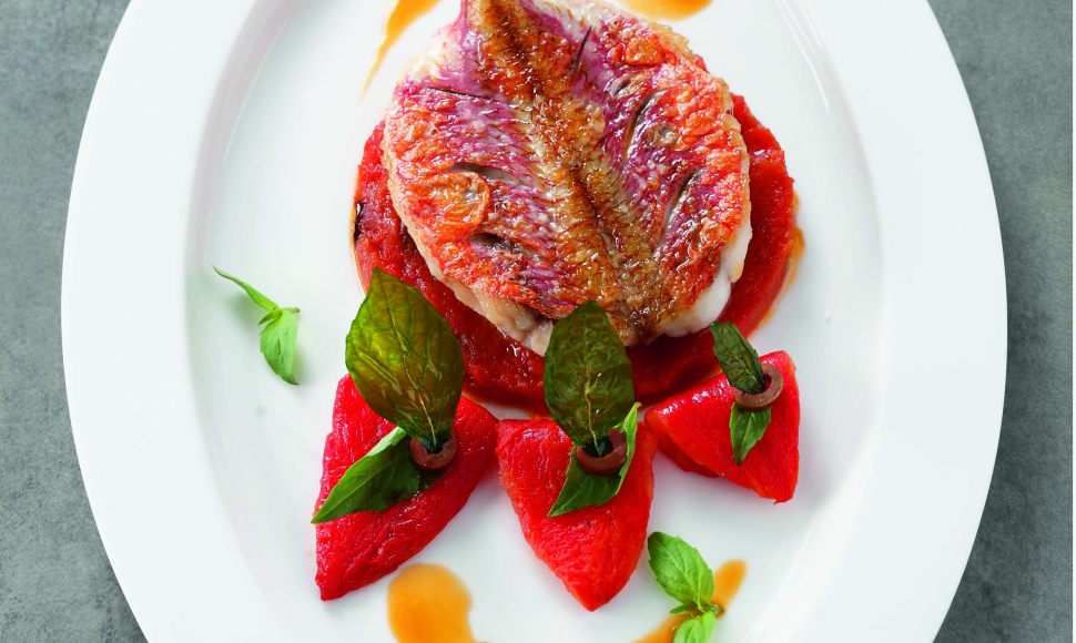Coupez les nageoires des rougets, écaillez-les et videz-les. Coupez la tête et conservez-la. Levez les filets en papillon : incisez au niveau du ventre jusqu’à la queue de chaque côté de l’arête centrale. Décollez les filets en glissant la lame le long de l’arête sur toute la largeur du rouget et glissez jusqu’à la queue sans couper la peau au niveau du dos. Retirez l’arête centrale et coupez-la au niveau de la queue. Réservez-la. Désarêtez à l’aide d’une pince à épiler et incisez la peau légèrement.