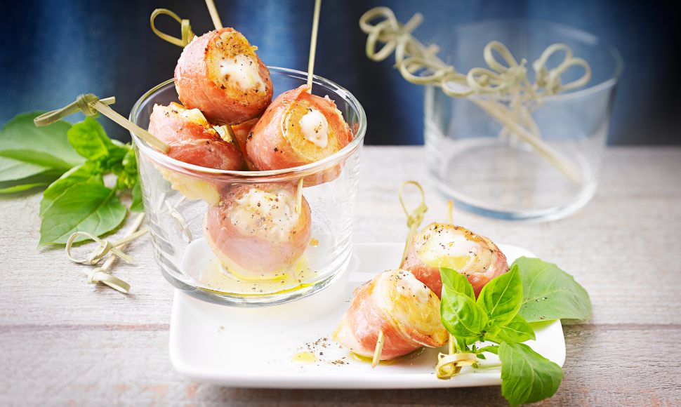 A l’extrémité de la lanière de volaille, placer un cube de fromage. Rouler la volaille puis entourer avec les lanières de jambon sec. Piquer chaque rouleau avec un pic pour tenir le tout. Dans une poêle, ajouter un filet d’huile et cuire les roulés de volaille. Saler et poivrer.