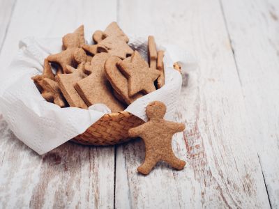 Tamiser ensemble la farine et la levure. Les déposer dans le bol du robot muni du batteur avec le sucre, et la poudre d’amandes. Faire tourner pour mélanger. Puis ajouter le beurre en pommade et les zestes d’agrumes râpés et faire tourner à nouveau jusqu’à ce que le mélange soit assez finement sablé. Incorporer ensuite le jaune d’œuf, l’œuf, l’eau de fleur d’oranger et le kirsch. Arrêter de travailler la pâte dès qu’elle est lisse. La sortir du batteur, la mettre en boule. Puis l’étaler entre deux feuilles de papier sulfurisé sur une épaisseur de 2 mm. La réserver au frais pour au moins 30 minutes. Ensuite, découper la pâte avec des emporte-pièces de formes variées (sapin, bonhomme de neige, étoile etc.). Préchauffer le four à 180°C. Beurrer et fariner une plaque. Y déposer tous ces sablés. Les cuire pendant 10 à 15 minutes jusqu’à ce qu’ils soient joliment dorés. Les débarrasser et les réserver au sec sur une grille.