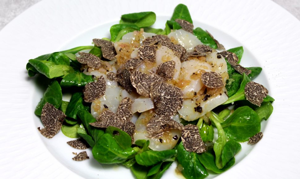 Les fêtes de fin d'année sont l'occasion rêvée pour réaliser une recette à la truffe noire. Celle-ci est parfaite pour une entrée d'un menu de Noël mais vous pourrez aussi la préparer tout l’hiver puisque c’est la saison des Saint-Jacques, de la mâche et de la truffe.