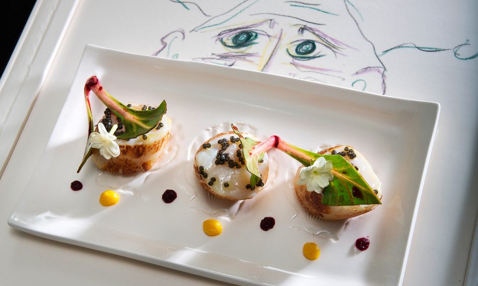 Ouvrir les coquilles Saint-Jacques, les nettoyer et les réserver sur du papier poisson. Lever les filets de maquereaux, désarêter puis enlever la peau. Réaliser une purée de betteraves avec les betteraves cuites.