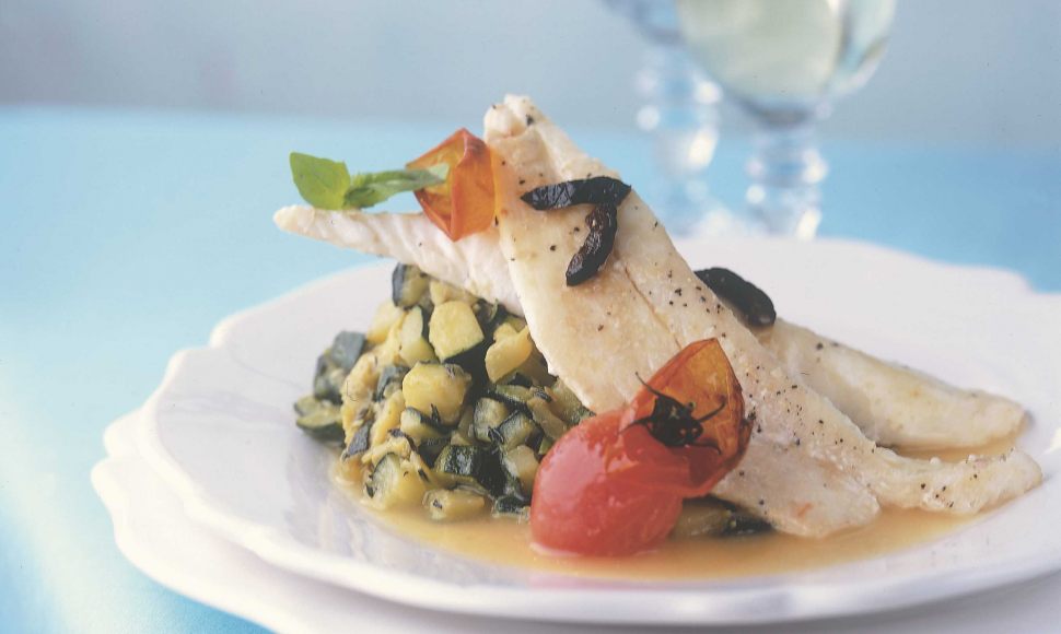 Répartissez l’ensemble autour des poissons avec l’huile d’olive, le bouillon réduit, les graines de fenouil et le basilic.