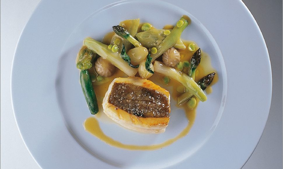 Saint-pierre cuit au plat, légumes d’été à la grecque, sucs de cuisson