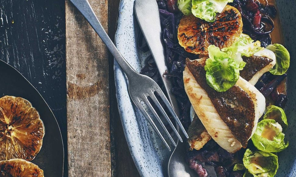 Une recette rafraîchissante dotée d'un mariage de saveurs exquis, des filets de Saint-Pierre au beurre salée, on y ajoute des choux de Bruxelles, du chou rouge et des oranges grillées !