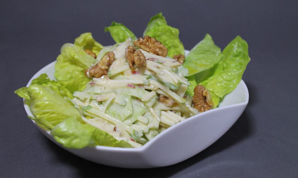 Cette salade est aussi légère que gourmande. Le céleri est très faible en calorie et la noix sucrée apporte le juste croquant à une délicate sauce au yaourt. Une recette à déguster sans modération.