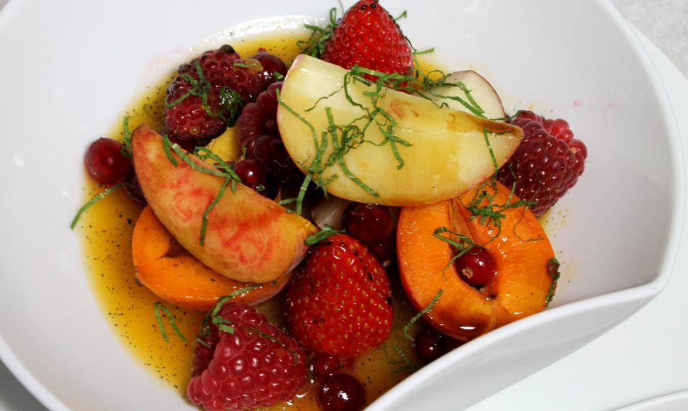 Réalisez en toute simplicité une salade de de fruits d'été fraîche et gourmande. Très parfumée, cette recette diffère de la traditionnelle salade de fruits. Celle-ci est agrémentée d'une vinaigrette, d'un sirop de vanille et d'un trait de balsamique pour apporter un peu de peps à votre dessert. Vous allez être conquis par ces saveurs et son originalité.
