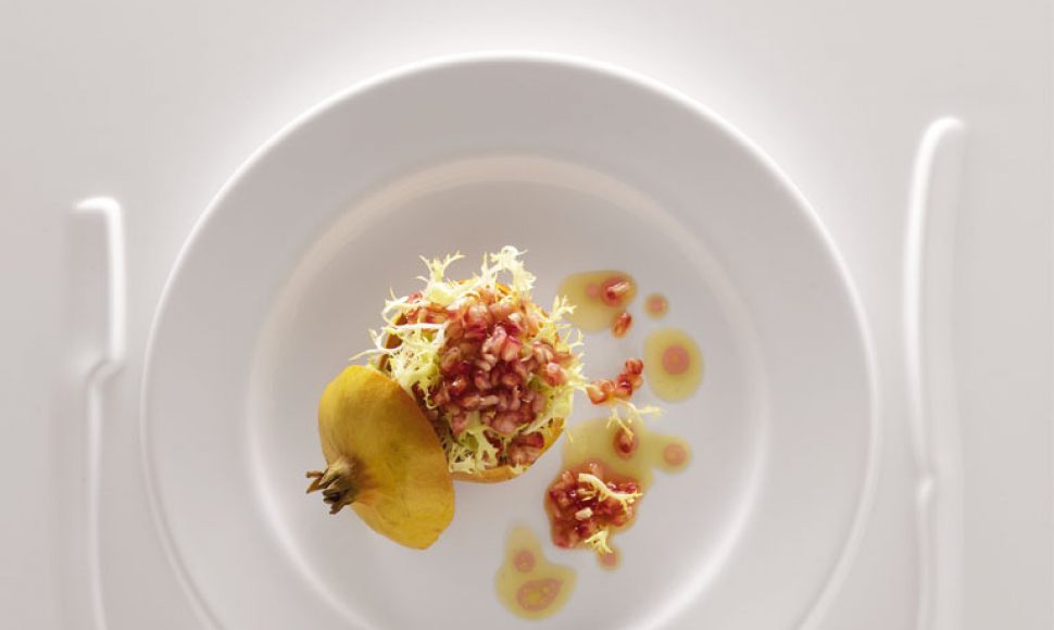 Ce fruit est le symbole, ainsi que le nom, de la capitale de l’ancien royaume de Grenade. Les arbres qui le portent sont présents dans tous les jardins des cármenes (maisons bourgeoises de Grenade). Nous avons modifié la présentation de cette « Ensalada de granada ».
