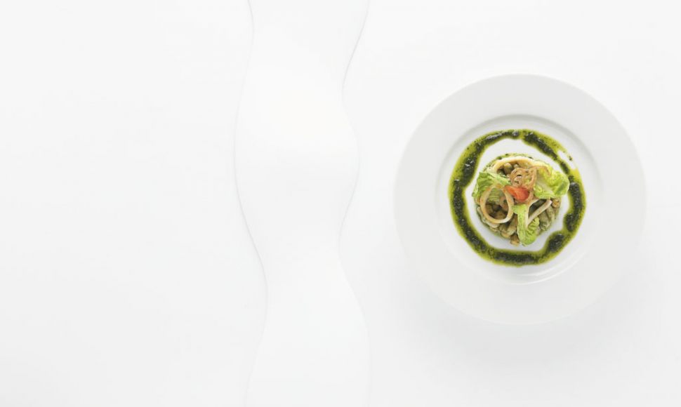 Salade de haricots cocos et garbanzos, chipirons à la plancha