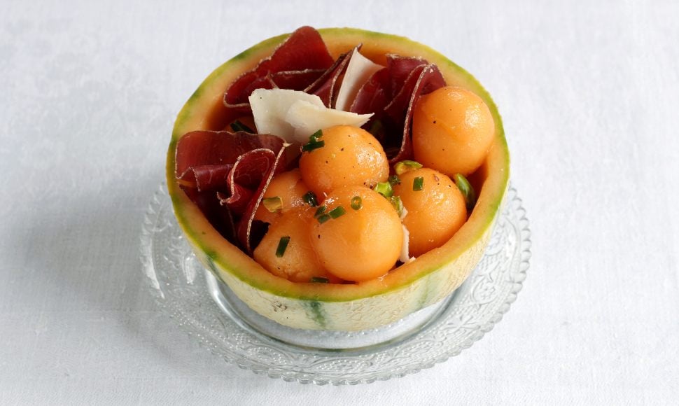 Salade de melon à la viande des Grisons, parmesan et pistaches grillées