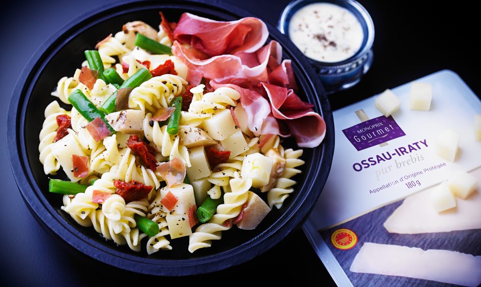 Couper les artichauts, les tomates séchées, l’Ossau Iraty et le jambon San Daniele en petits morceaux. Égoutter les pâtes et les mélanger avec tous les ingrédients.Pour préparer la sauce, porter à ébullition la crème allégée et verser le fromage Gorgonzola Mascarpone. Mélanger. Verser généreusement sur les pâtes et déguster aussitôt.