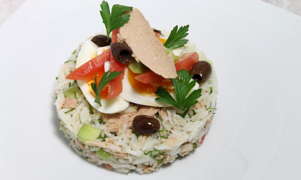 Entamez votre repas avec une délicate salade de riz au thon. Avec ses herbes fraîchement ciselées et ses légumes croquants elle ravira vos papilles et régalera vos yeux. Il suffit pour cela de dresser votre riz avec un emporte-pièce et d'apporter un peu de volume avec la garniture.