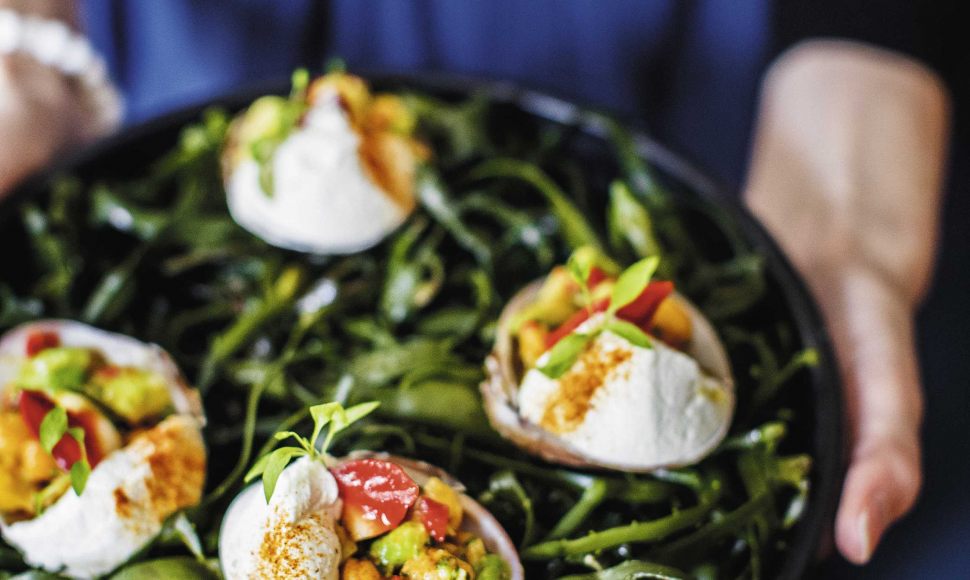 Étape 1 : Salade de vernis, pois chiches et crème d'huître