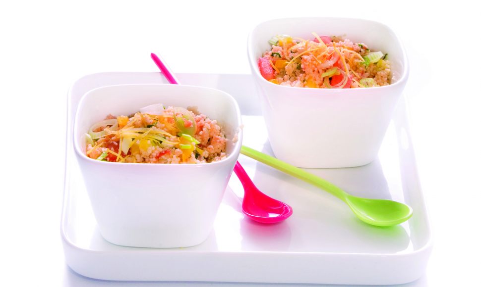 Pour changer du traditionnel taboulé, Alain Ducasse vous propose sa salade fraîche de semoule aux légumes croquants. Après avoir préparé les grains de semoule en les faisant gonfler dans de l'huile d'olive et du jus de citron, taillez les différents légumes, ciselez les herbes puis assaisonnez délicatement la salade d'un trait de tabasco. Vous n'avez plus qu'à savourer cette entrée colorée aux parfums d'été.