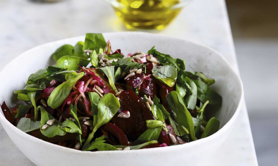 Faites cuire les betteraves dans de l’eau bouillante salée pendant 1 h. Épluchez-les puis taillez-les en tranches fines. Réservez. Lavez et séchez le pourpier.