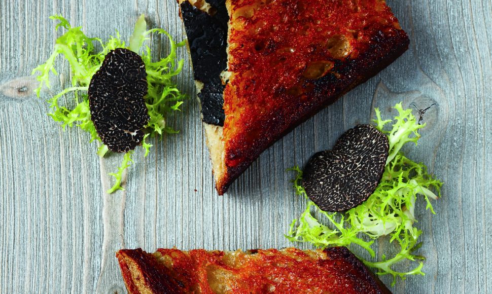 Déposez ensuite les lamelles de truffes sur la moitié des tranches, comptez 30 g par personne. Refermez les sandwichs.