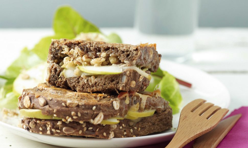 Un sandwich sucré-salé au brie et aux pommes, complété par une touche terreuse de noix.