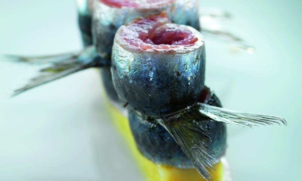 Blanchissez ces rectangles, puis disposez-les dans une assiette creuse. Ajoutez les gousses d’ail éclatées, les feuilles de laurier, et recouvrez d’huile d’olive. Couvrez l’assiette de film alimentaire et faites cuire au four à micro-ondes à 300 watts pendant 7 min.