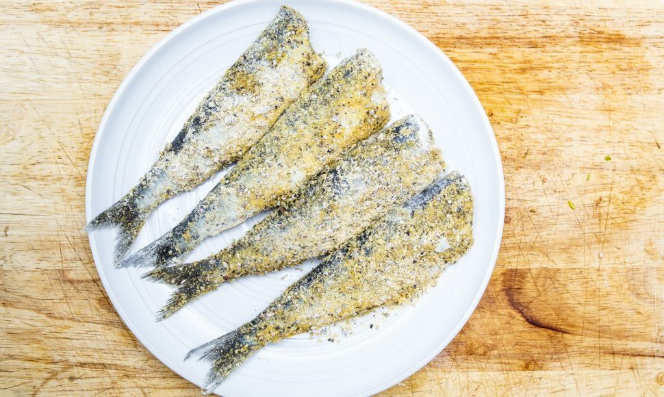 Des sardines panées à la semoule de maïs et huile d'olive qui peuvent accompagner des légumes.