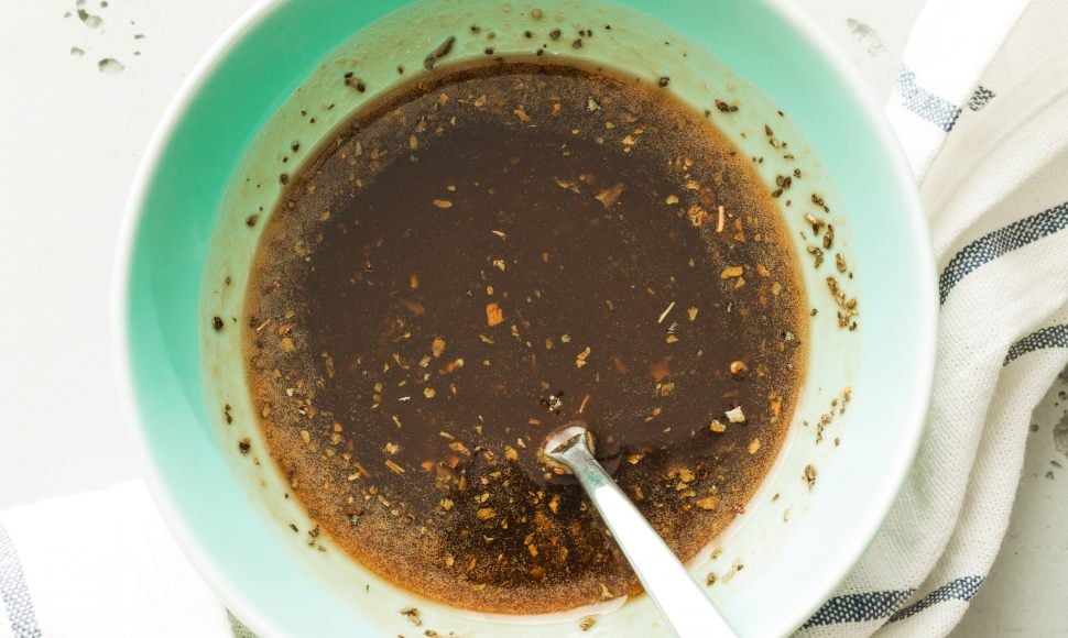 Vinaigre et huile, deux ingrédients phares d'une vinaigrette. Ici le cerfeuil et le persil viennent rehausser son parfum.