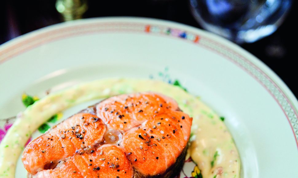Saumon en darne épaisse cuit tiède/chaud, sauce béarnaise