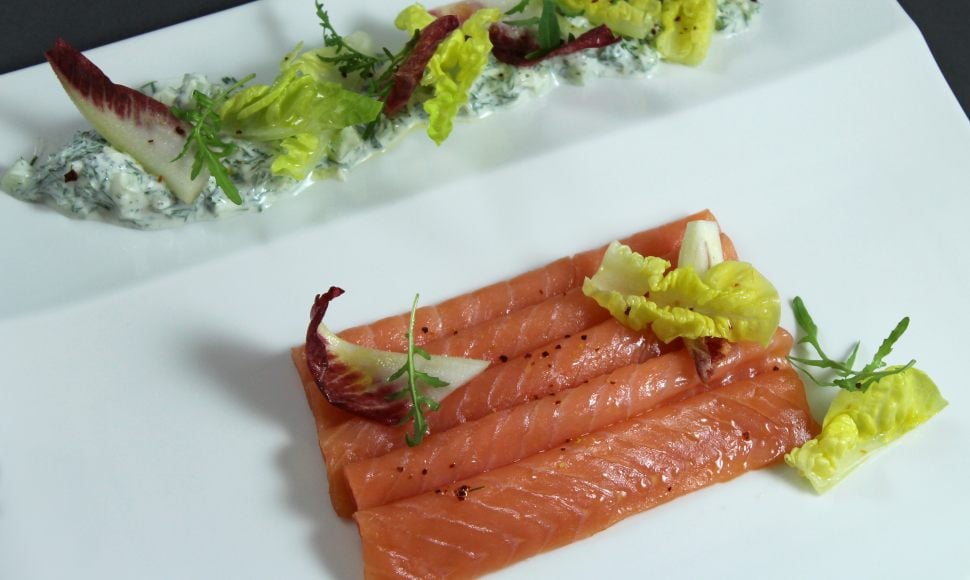 Saumon fumé, condiment concombre, yaourt, gingembre